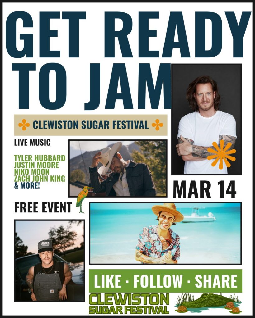 Screenshot“Through Thursday morning, March 12th, you can register to win a meet and greet for you and your guest with the artists coming to Sugar Festival! Increase your chance to win. Register two ways. Email your name, city location and phone number to purecountrywafc@gmail.com -AND- listen to “Mornings with Moore” with Craig Moore on Pure Country WAFC. When you hear the medley of Sugar Festival artists’ songs, call 863-983-5900 to register! No purchase necessary.”